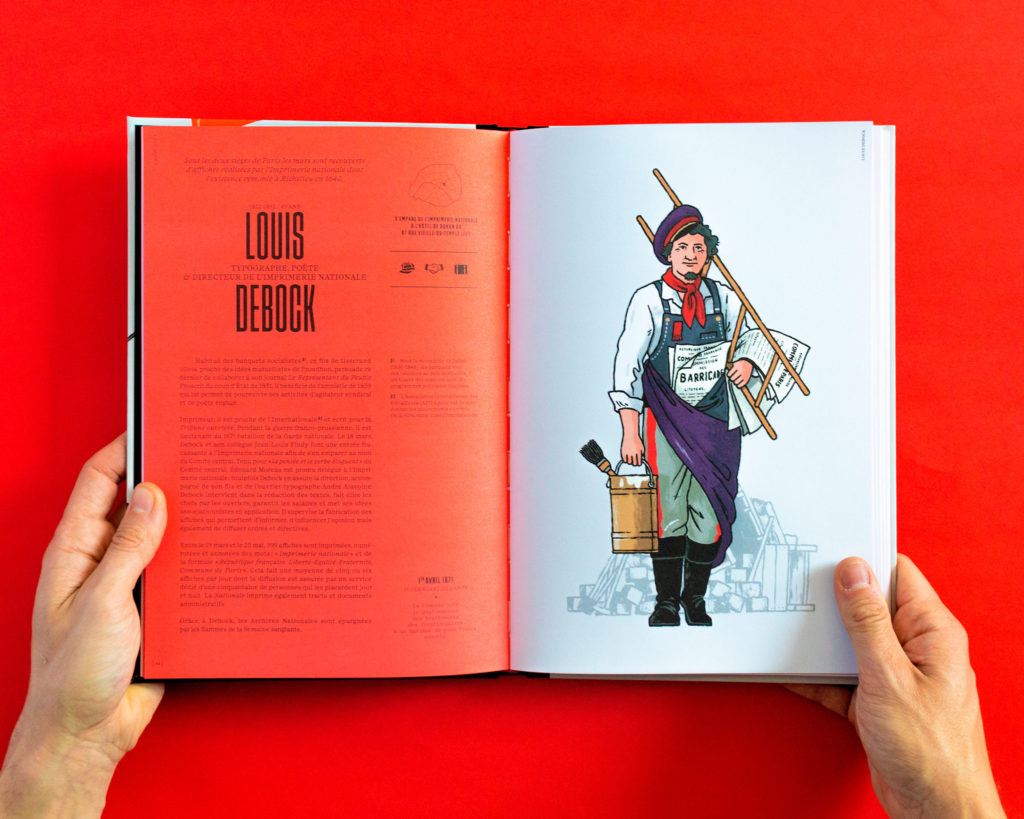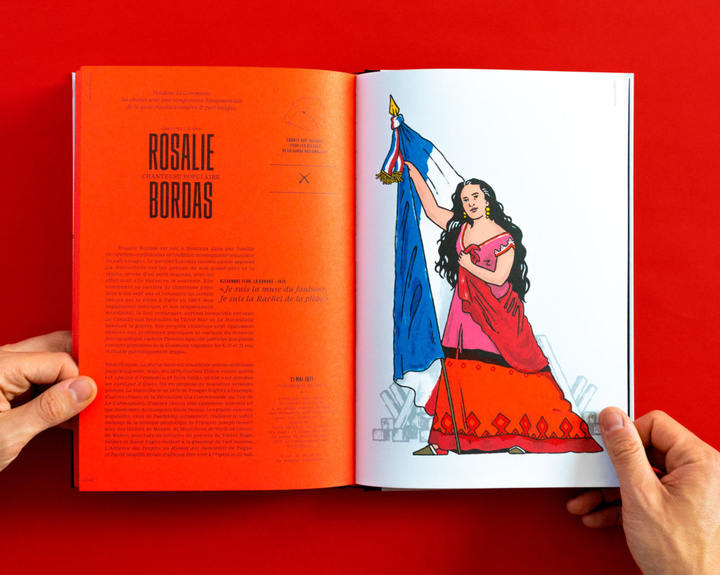 L’ouvrage d’art du projet « Nous la Commune » présentant les cinquante figures de Dugudus accompagnées des textes de Hugo Rousselle apportant des éléments sur la vie des insurgés et sur l’histoire de la Commune de 1871. L’introduction de l’historienne Mathilde Larrère et la préface de l’historien spécialiste de l’affiche Alain Gesgon offrent des éléments contextuels précieux sur ce fait historique marquant.